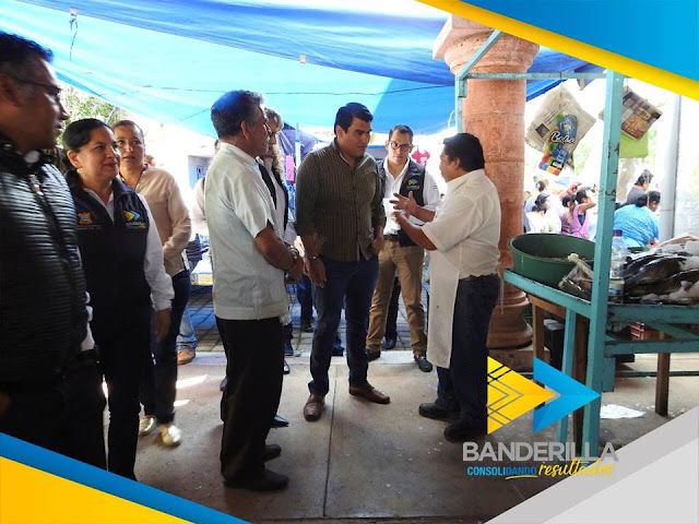 En compañía de L.C. Juan Manuel Rivera González, Presidente Municipal; L.C. Edna Catalina Godoy Carbajal, Presidenta del DIF Municipal; Ediles y Directores de Área, realizamos un recorrido para supervisar las instalaciones así como los productos y servicios que brinda el Mercado Banderilla.