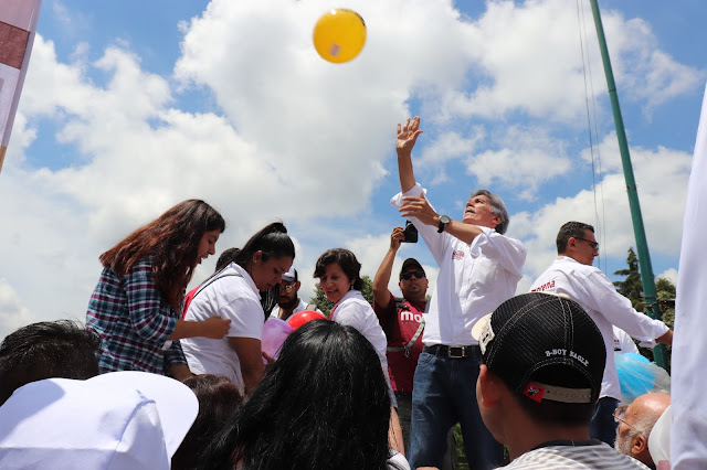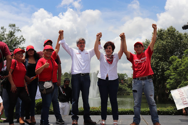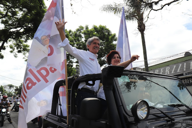 Acompañado de la candidata a la diputación local por el distrito 10 de Xalapa Urbano, Rosalinda Galindo Silva, los candidatos terminaron su recorrido en el paseo de Los Lagos.