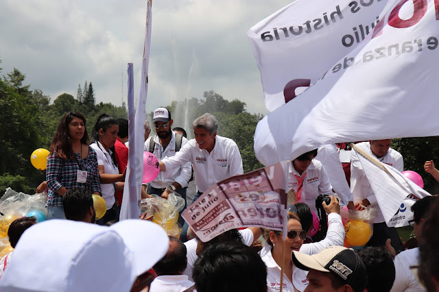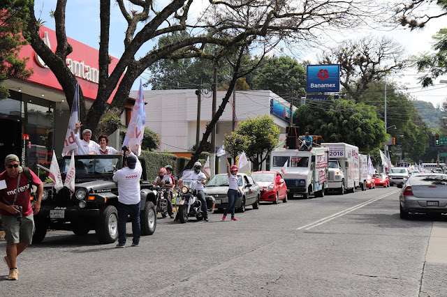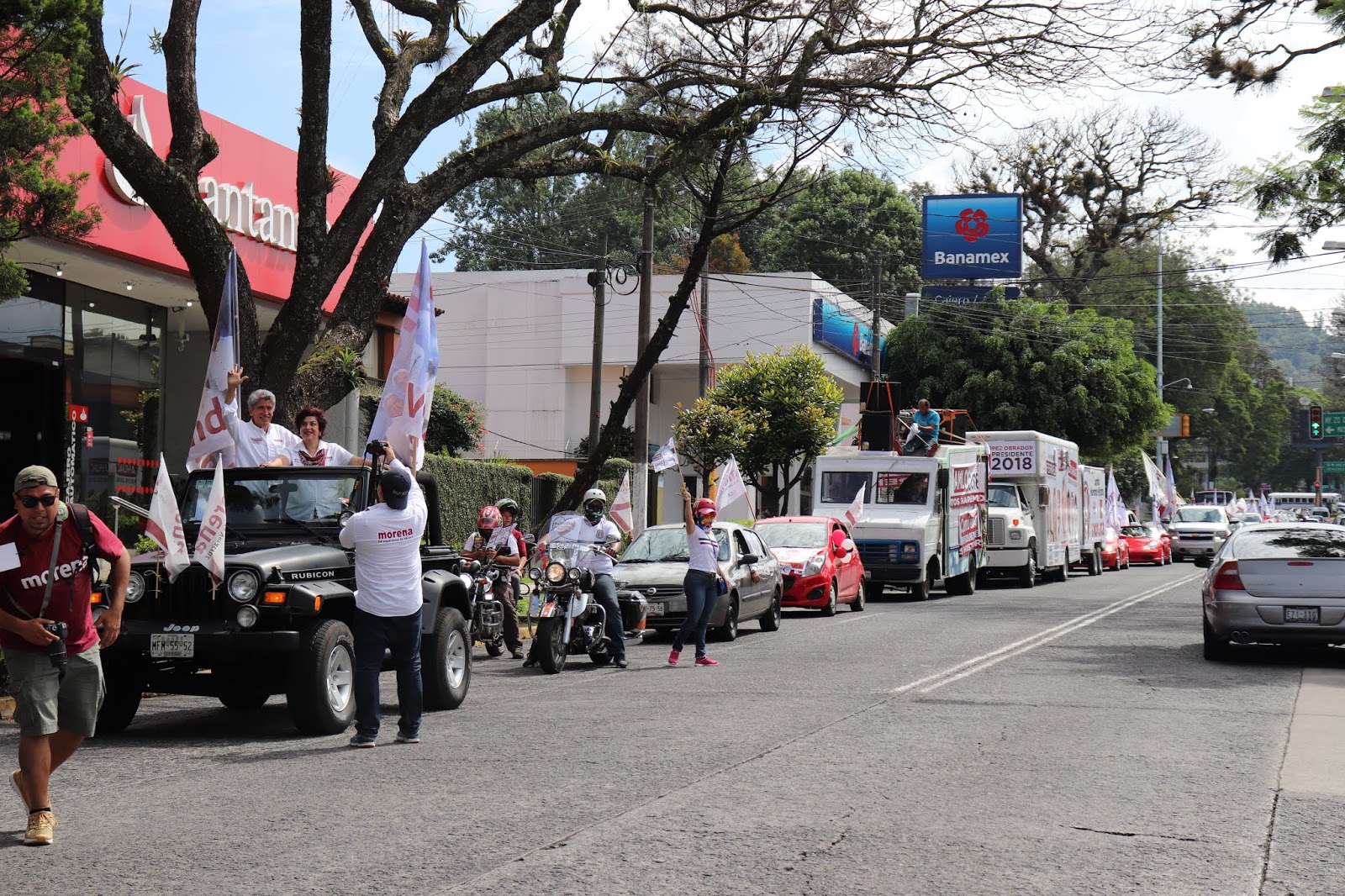 Con una concurrida caravana vehicular el candidato a la diputación federal por la coalición "Juntos Haremos Historia", Rafael Hernández Villalpando, cerró su campaña.