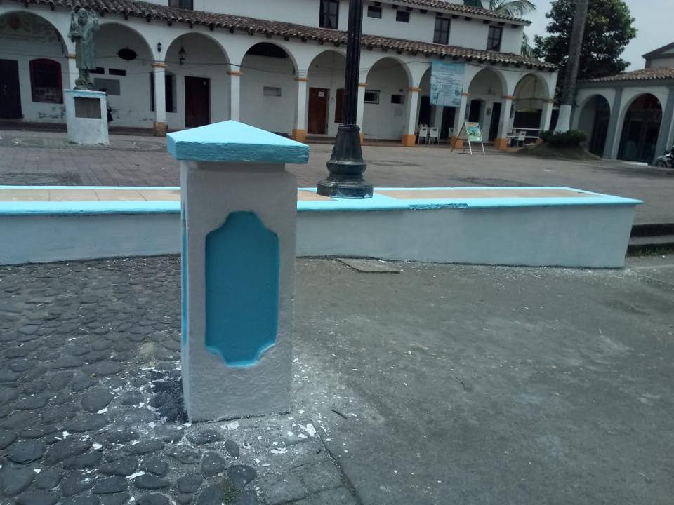 Por instrucciones del presidente municipal, Argeniz Vázquez Copete, se rehabilita la Plaza Cervantina, ubicada en el centro de esta ciudad Colonial por un Santiago Tuxtla para Todos.