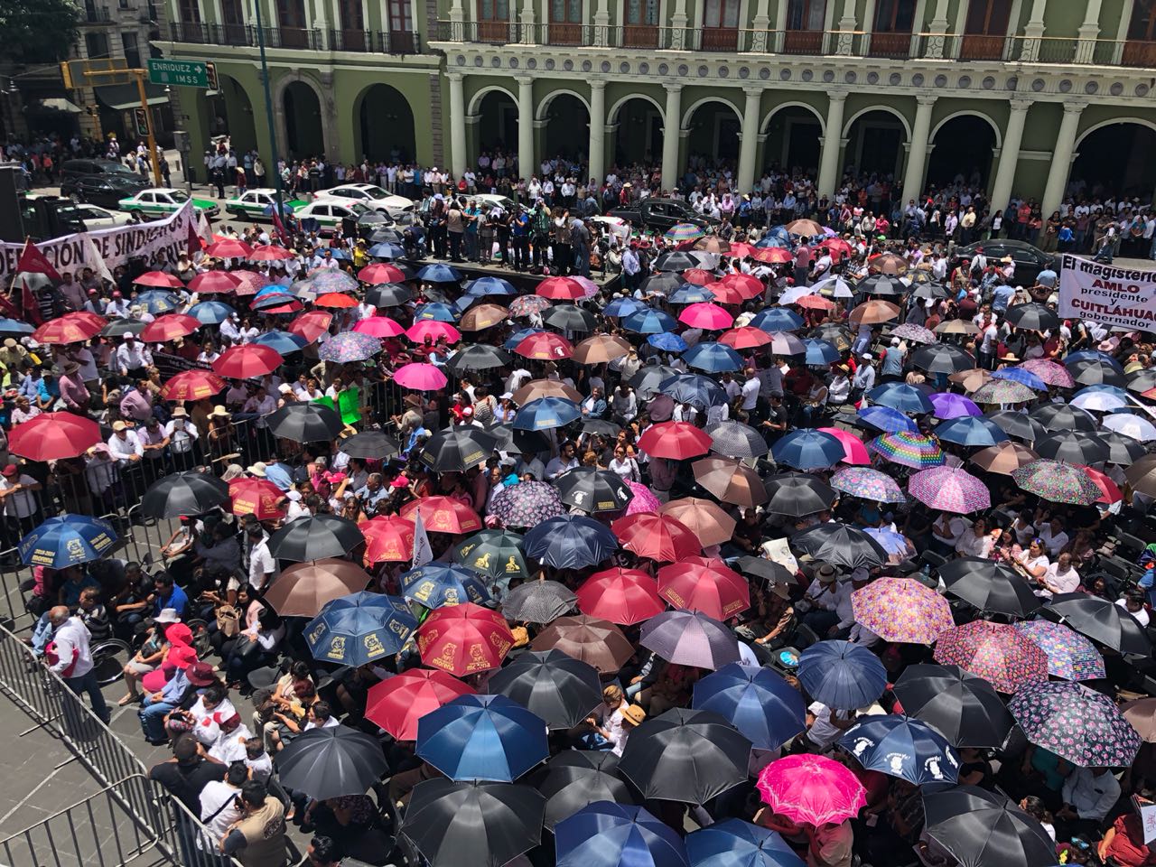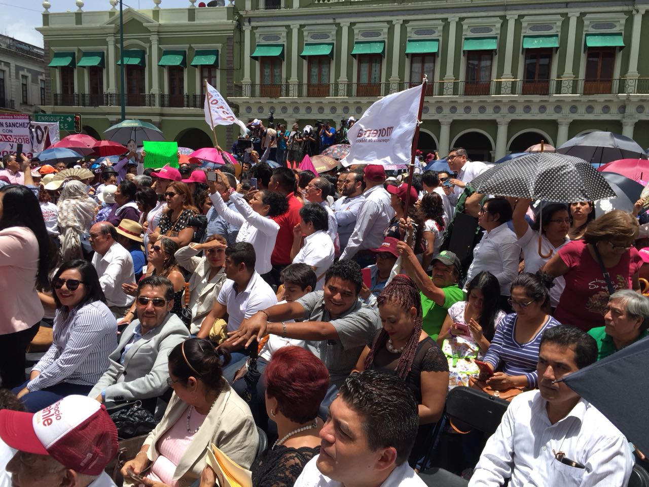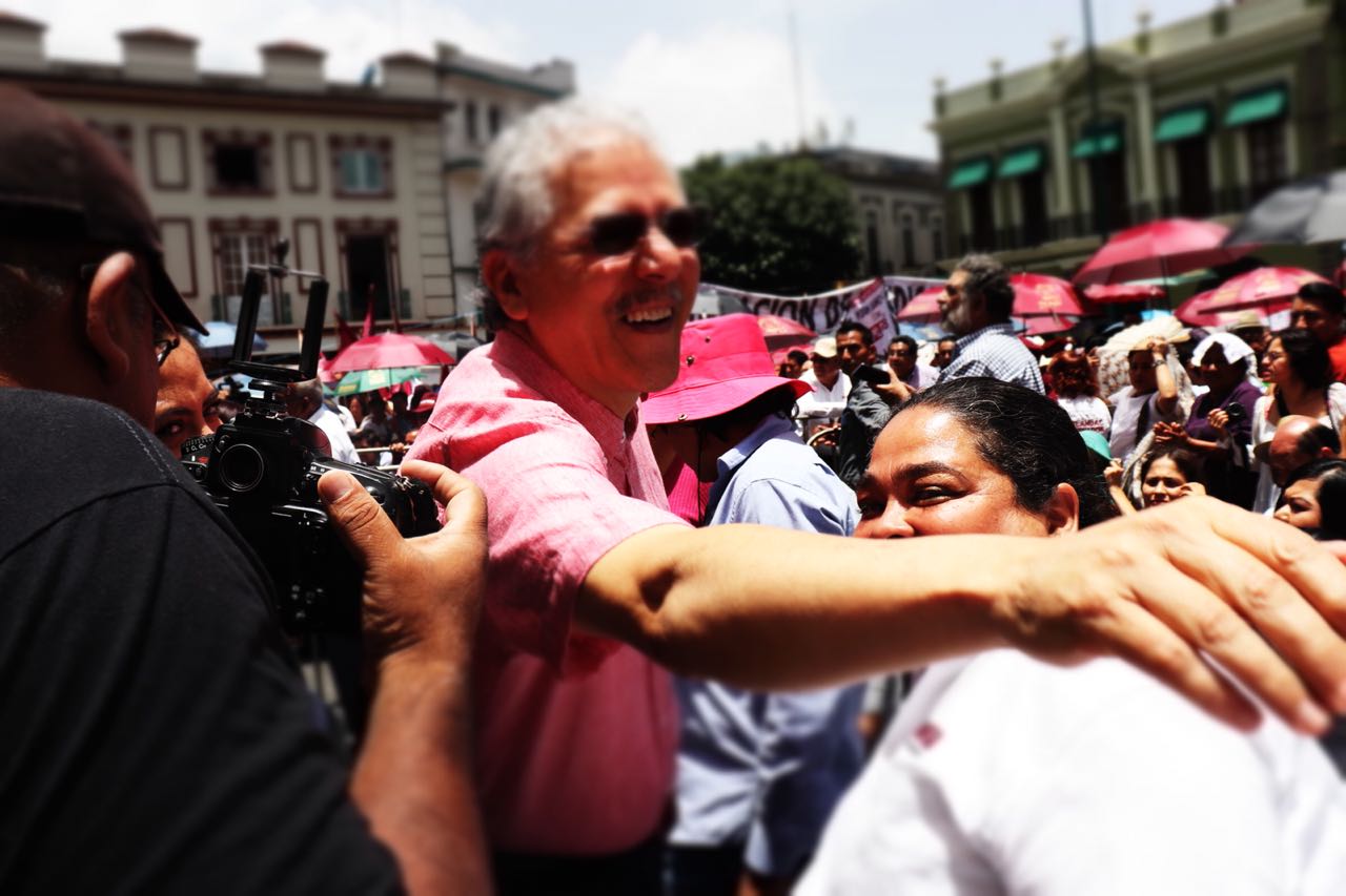 +Ante cientos de personas que se reunieron en la Plaza Lerdo de Xalapa, la capital veracruzana, el gobernador electo Cuitláhuac García Jiménez emitió su primer mensaje desde que se le entregó el acta de mayoría.