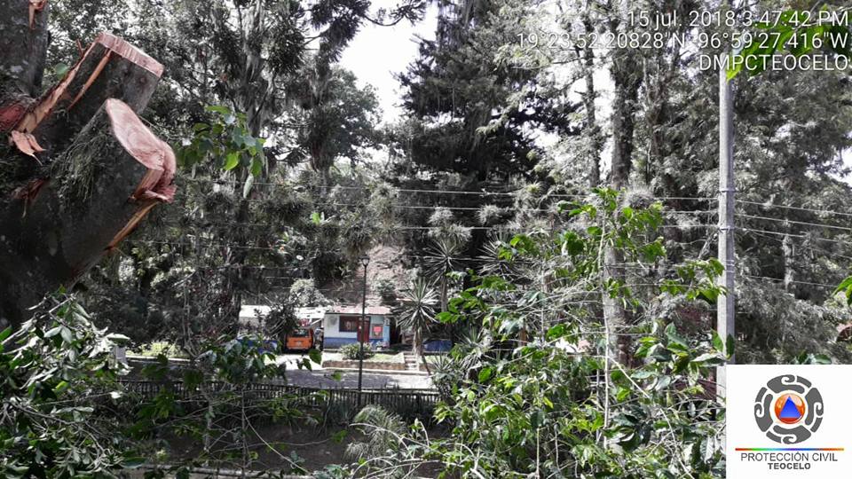 Dentro del marco de acciones de protección civil, se derribó un árbol que estaba en riesgo de caer sobre el salón salón social de la comunidad de Santa Rosa además de poner en peligro a los habitantes y visitantes que transitaban en esta zona.