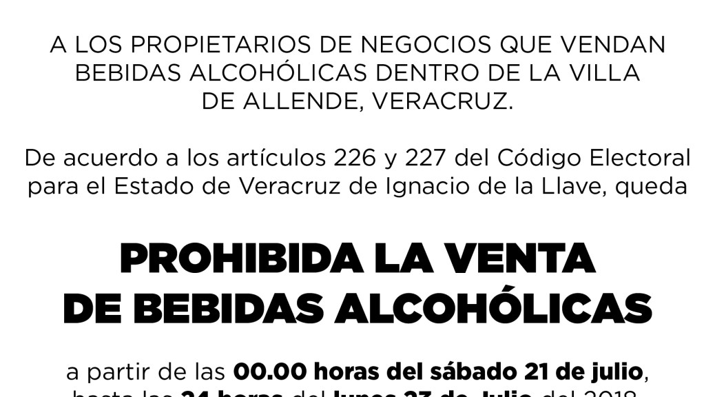 +De acuerdo a los articulos 226 y 227 del código electoral para el estado de Veracruz de Ignacio de la Llave queda prohibido la venta de bebidas alcohólicas