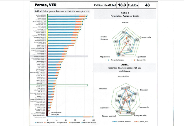 De acuerdo con el índice realizado por la consultoría, con información de la Secretaría de Hacienda y Crédito público (SHCP), el municipio de Perote presentó un avance, obtenido una calificación de 16.3 puntos, superior al promedio nacional situado en 38.9.