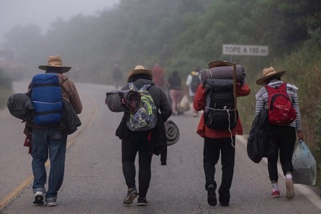 Caravana migrante que avanza por Veracruz cada vez más cansada