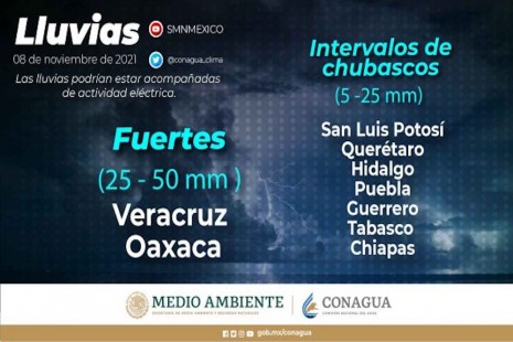 Se pronostican lluvias fuertes en regiones de Oaxaca y Veracruz