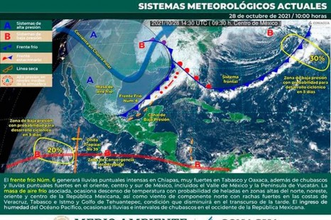 Emiten aviso especial por entrada del frente frío número 6 a Veracruz