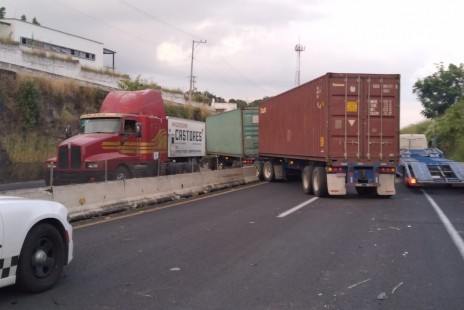 Tráiler sin control choca contra los muros divisores de la carretera Xalapa-Cardel