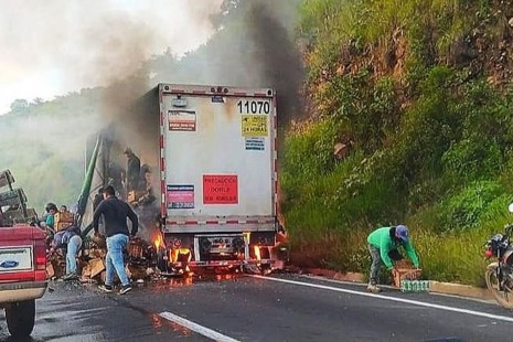 Tráiler cargado con cervezas se incendia y pobladores se las roban