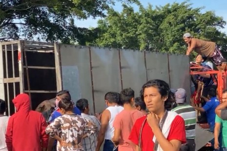 Vuelca tráiler cargado de cerdos; la policía no pudo evitar rapiña