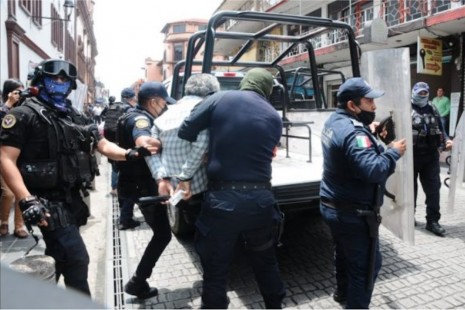 Elementos de la SSP detiene a taxistas que se manifestaban en Plaza Lerdo