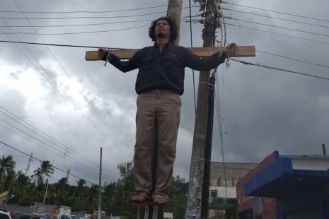 Trabajador de Pemex se "crucifica"; acusa que suma un año sin trabajo