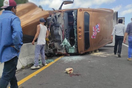 Vuelca tráiler en la Xalapa-Perote, policía impide rapiña disparando al aire