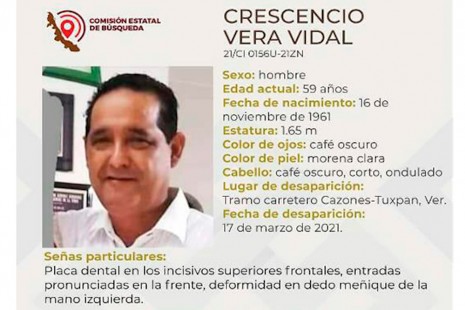 Desaparece Crescencio Vera exalcalde de Tepetzintla y funcionario de la CAEV