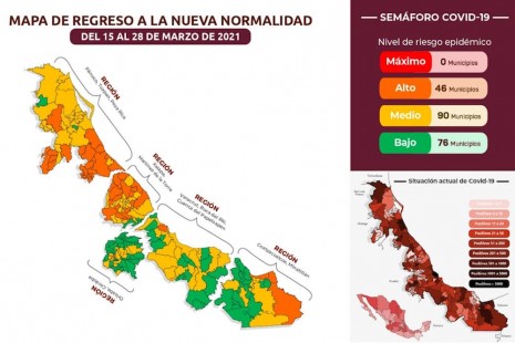 La Secretaría de Salud federal mantiene a Veracruz en color amarillo por dos semanas
