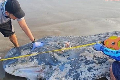 Encuentran una ballena en estado de descomposición a las orillas de la laguna de Tamiahua