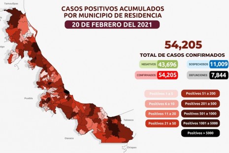 Veracruz acumula 54 mil 205 contagios y 7 mil 844 defunciones por Covid-19