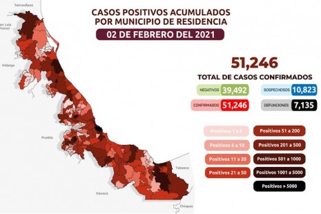 Veracruz acumula 51 mil 246 casos confirmados y 7 mil 135 muertes por Covid
