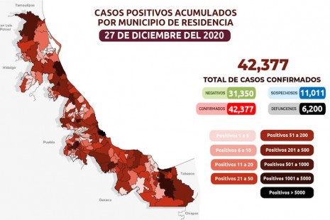 Veracruz suma 6 mil 200 muertes y 42 mil 377 contagios por Covid-19