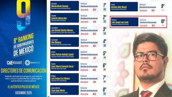 Iván Luna, en el top ten de los voceros estatales mejor evaluados en México