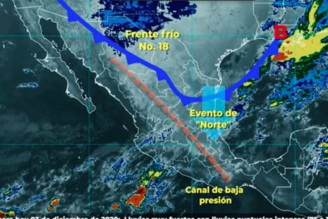 Frente frío 18 ocasionará lluvias en Veracruz y el sureste del país