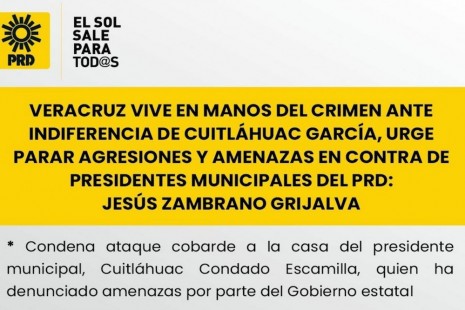 PRD exige al gobernador parar agresiones contra alcaldes en Veracruz