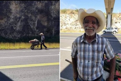 Abuelito viaja de Sonora a Veracruz solo con sus pertenencias en una carretilla