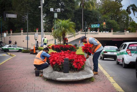 Coloca Ayuntamiento de Xalapa flores de Nochebuena en parques y áreas jardinadas