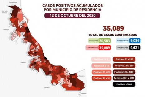 Veracruz acumula 35 mil 245 casos positivos de Covid-19 y 4 mil 644 muertes
