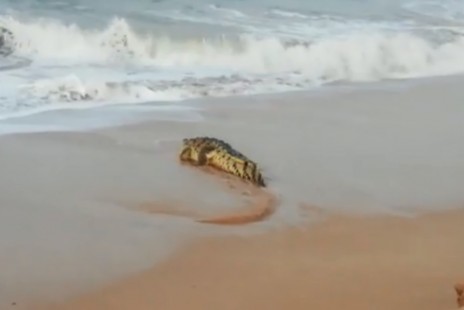 Capturan cocodrilo de un metro en las calles de Villa Allende, Coatzacoalcos