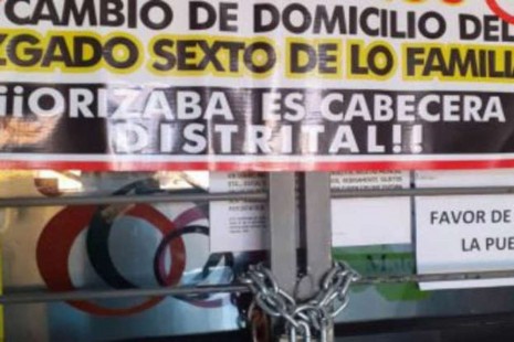 Abogados de Veracruz se encadenan por cambio de sede de juzgado
