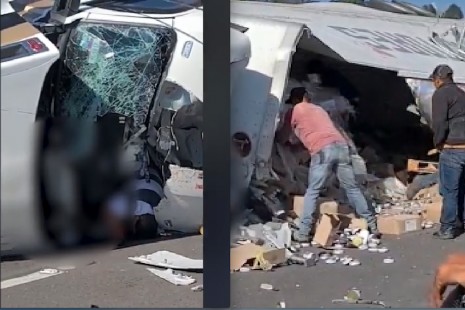En Perote, vuelca tráiler y roban la carga; nadie ayuda al chofer y muere