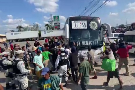Altercado entre caravana migrante y Guardia Nacional en Veracruz