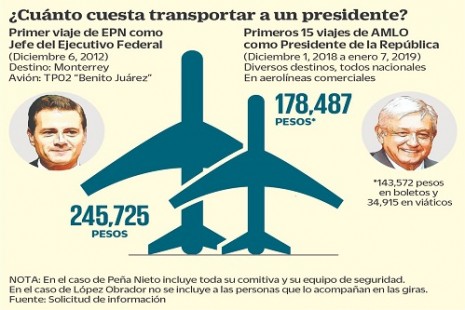 Estas cifras contrastan con el anterior gobierno: la administración de Enrique Peña Nieto detalla que tan sólo el primer vuelo del priísta como presidente tuvo un costo superior a lo que López Obrador gastó en más de un mes de viajes.