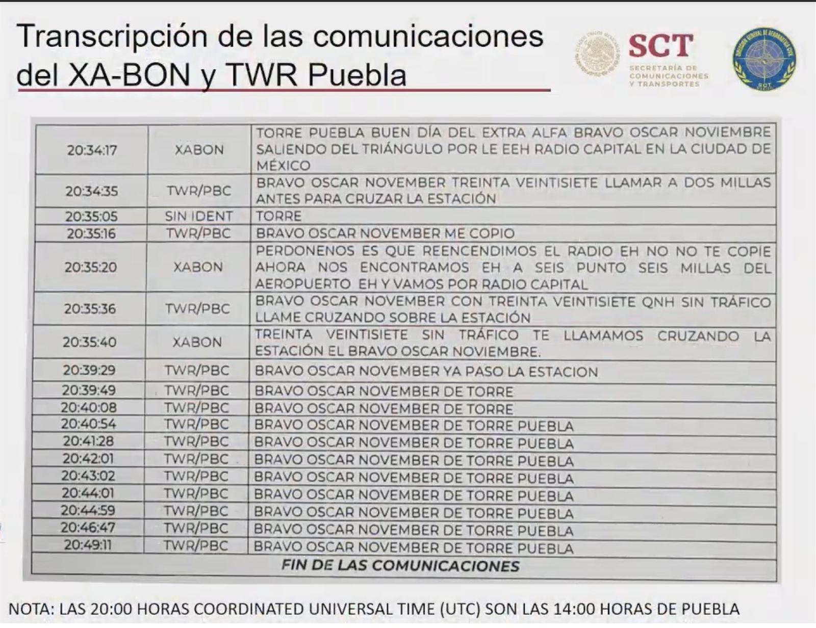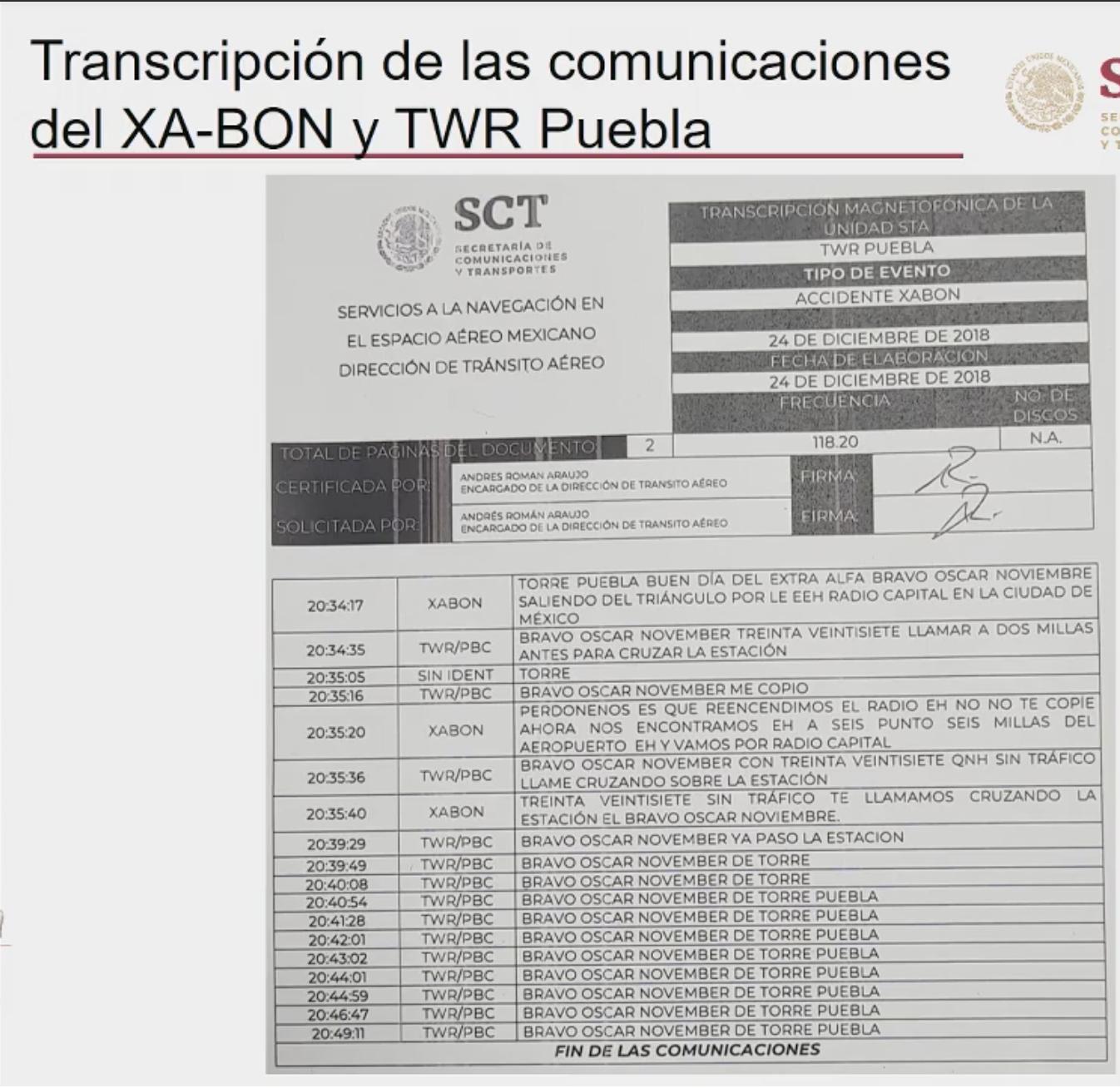 El subsecretario de Comunicaciones y Transportes, Carlos Morán Moguel, reveló la comunicación entre la torre de control del Aeropuerto Internacional de Puebla y el helicóptero en el que fallecieron la gobernadora Martha Erika Alonso, su esposo, el senador Rafael Moreno Valle, y tres personas más.