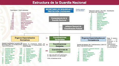 La estructura se divide en tres segmentos: el grupo “veterano”, conformado por 32 mil elementos de la Sedena; dos mil 788 de la Semar y 17 mil 995 de la PF.