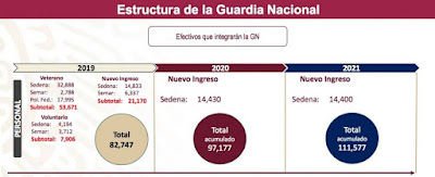 La Guardia Nacional iniciará operaciones el próximo 30 de junio con un total de 82 mil 747 elementos, que aumentarán a 111 mil 577 para 2021, de acuerdo con el documento de la estructura orgánica de este cuerpo de seguridad.