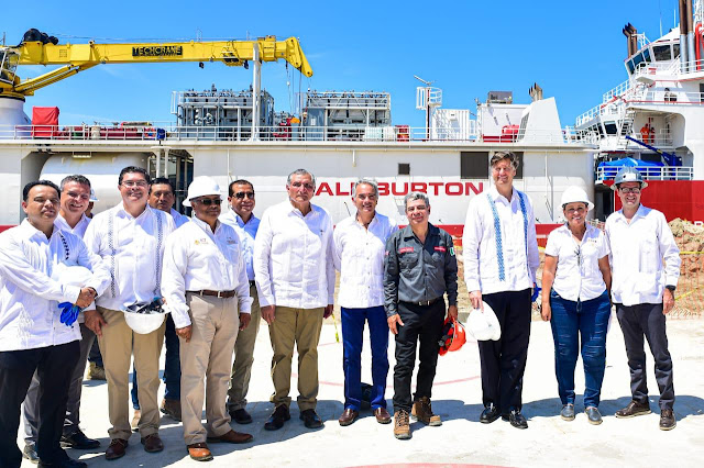 La secretaría de Energía Rocío Nahle, junto con el gobernador de Tabasco Adán Augusto López, y Christopher Landau, embajador de los Estados Unidos en México, inauguraron en Dos Bocas, una planta petrolera de 21 hectáreas entre la compañía Halliburton y ROCA Inmobiliaria.