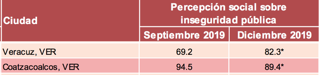 Veracruz y Coatzacoalcos, las ciudades más temidas del estado.- En 2019 la percepción de inseguridad por parte de los veracruzanos creció de manera considerable en ciudades de interés como Veracruz y Coatzacoalcos.
