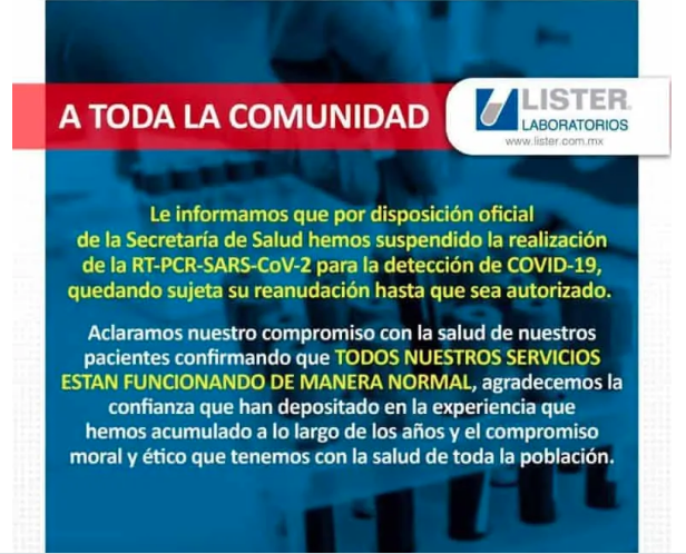 Lo anterior fue anunciado por el laboratorio y hospital privado, mismos en los que hace unos días se detectó el primer caso, que más tarde fuera confirmado por la Secretaría de Salud del Estado.