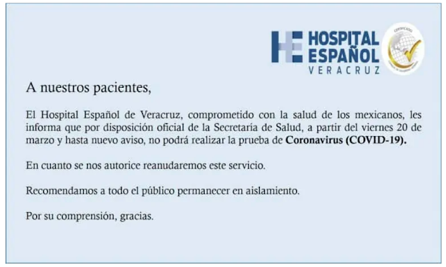 El Hospital Español de Veracruz y el laboratorio, mediante un comunicado dado a conocer la noche de este jueves, señalaron su compromiso con la sociedad porteña y de la conurbación por lo que acatarán la medida, pero señalaron que continuarán con el resto de sus servicios de manera normal y en cuanto la secretaría de salud se los apruebe realizará nuevamente los exámenes.