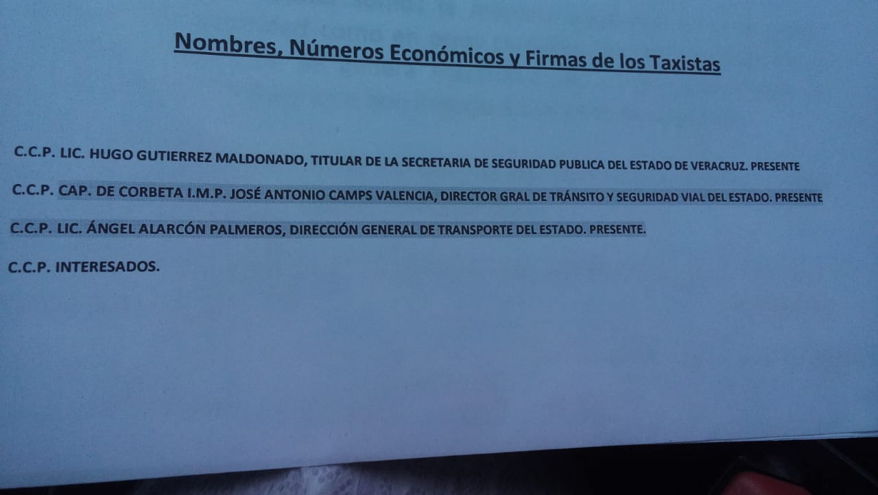 Taxistas independientes de la ciudad capital, integrados por 49 trabajadores del volante hicieron entrega de un oficio a las oficinas de Atención Ciudadana que depende del gobernador Cuitláhuac García Jiménez.
