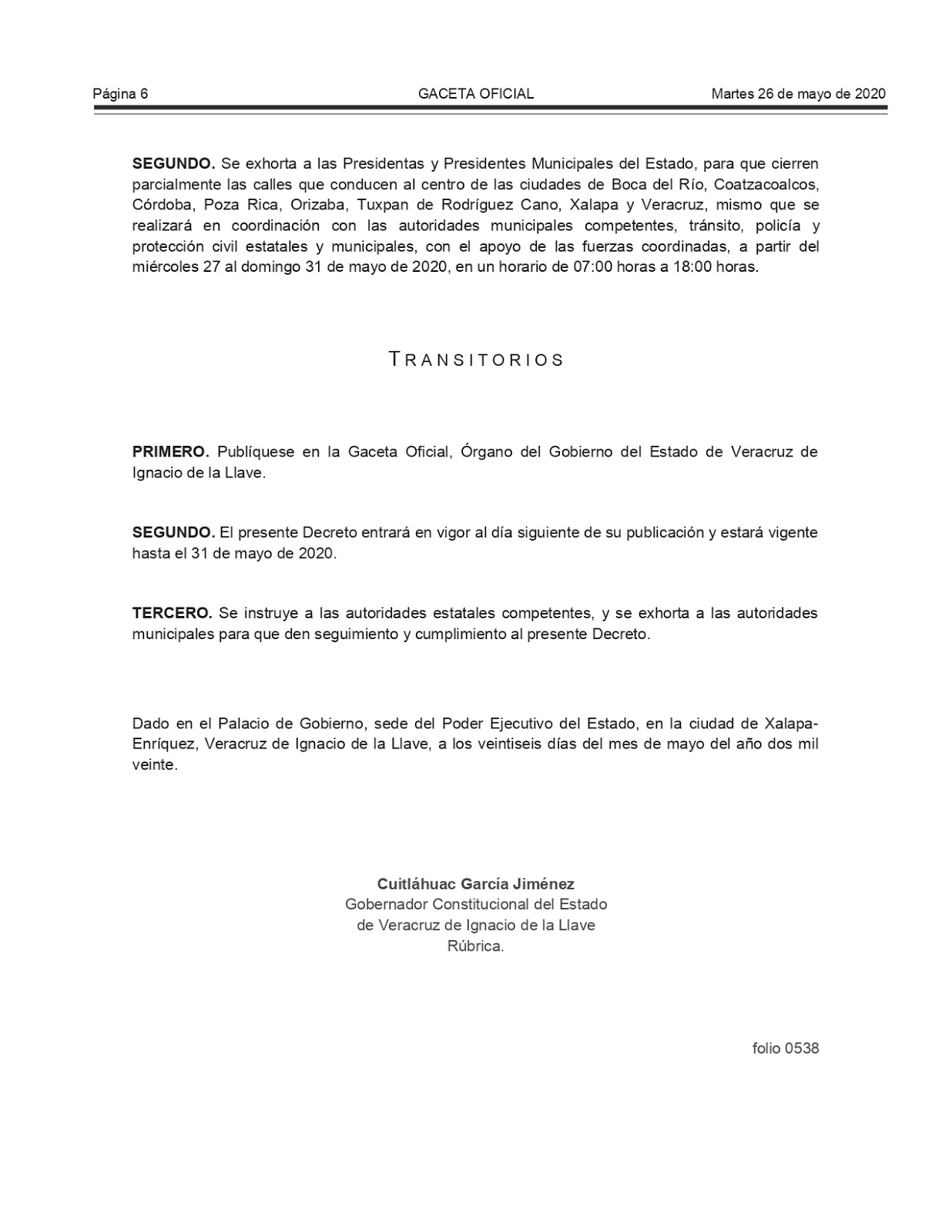 En dicho documento se establece que los municipios de Alvarado, Amatlán, Banderilla, Boca del Río, Coatepec, Coatzacoalcos, Coatzintla, Córdoba, Cosoleacaque, Fortín, Emiliano Zapata, Ixtaczoquitlán, La Antigua, Medellín, Minatitlán, Nanchital, Orizaba, Papantla, Poza Rica, Tihuatlán, Tuxpan, Xalapa y Veracruz deberán acatar estas disposiciones, por ser los puntos de mayor crecimiento en contagios de coronavirus.