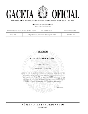 Este martes, el Gobierno del Estado publicó el Decreto por el que se determinan medidas temporales de inmediata aplicación para reducir la aglomeración y movilidad del 27 al 31 de mayo de 2020, derivado de la emergencia sanitaria generada por el virus SARS-CoV2 (COVID-19) en la entidad.