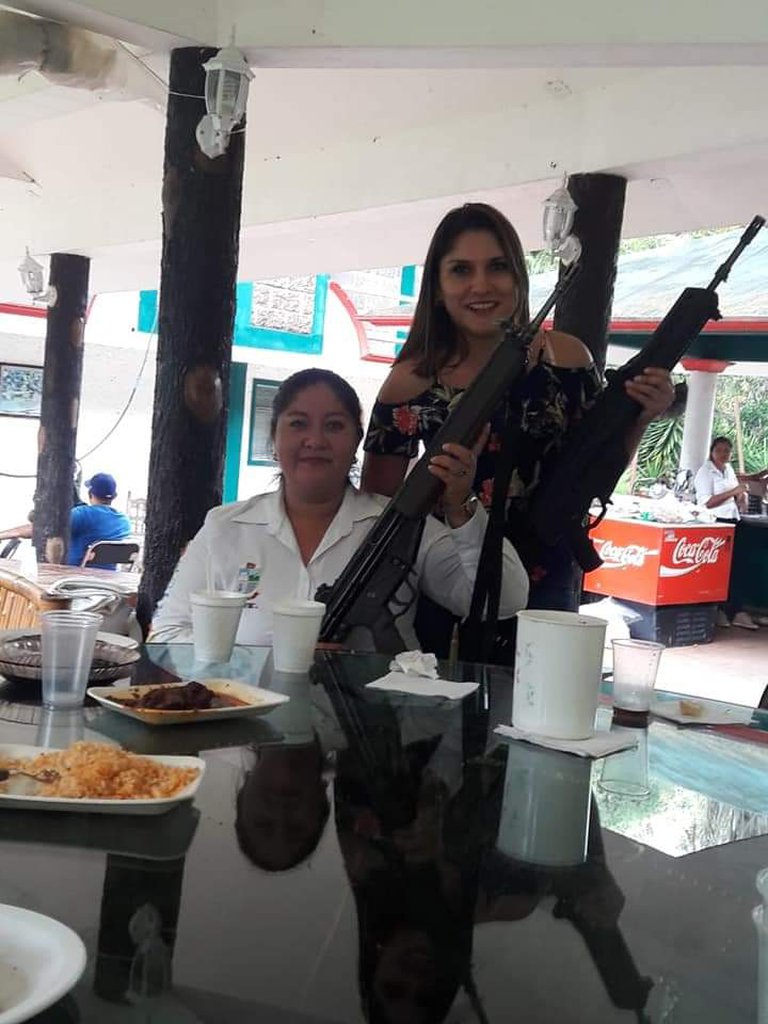 Ambas mujeres posan para la cámara, incluso Trinidad muestra una foto donde al parecer un integrante de la Guardia Nacional le muestra cómo disparar.