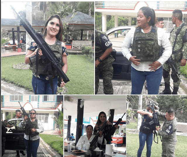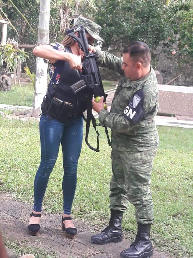 A través de sus redes sociales la secretaria del Ayuntamiento de Teocelo, en Veracruz, Trinidad Martínez Larios, presumió fotos posando con armas, las cuales ya han causado reacciones, debido a que las armas pertenecen a elementos de la Guardia Nacional.