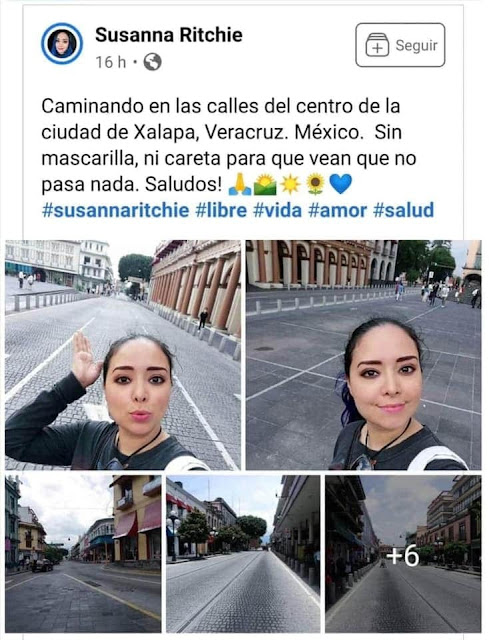 En la grabación la chica señala: "Caminando en esta ciudad de Xalapa y pura gente nada más y algún servicio de Gobierno que pasa, policías, limpia pública y así, pero bueno, saludos a todos, cuídense mucho y no pasa nada, yo no traigo nada de careta, cubrebocas y todo ese show y no pasa nada, saludos a todos".