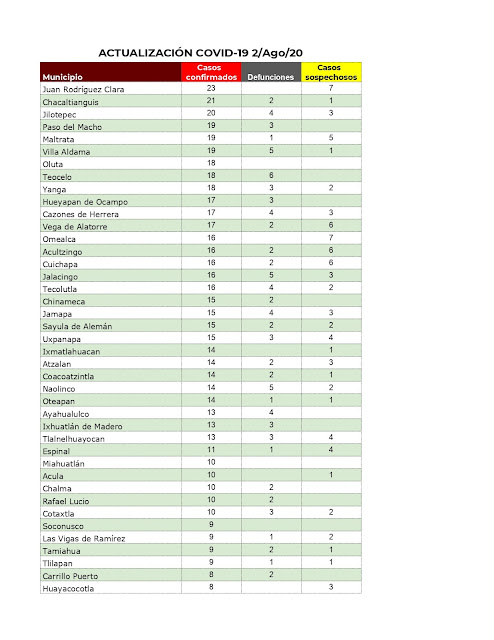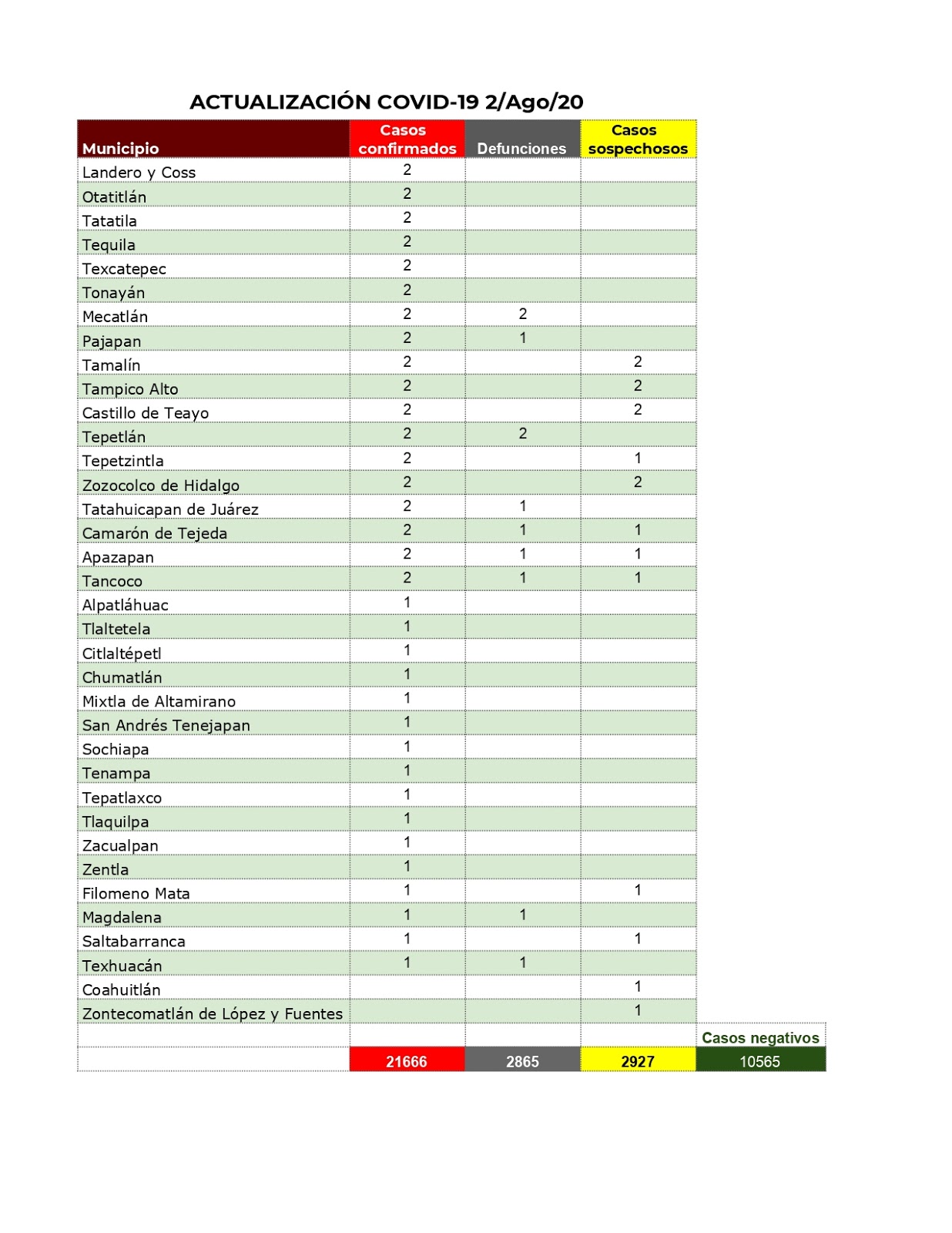 La secretaría de Salud del estado al corte de este sábado 1 de agosto, el municipio con más casos COVID-19 es Veracruz con 5,193, así como 675 defunciones y 505 sospechosos.