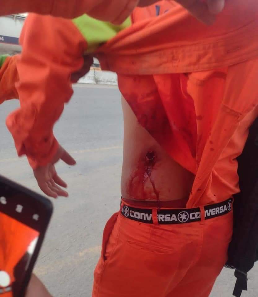 En las imágenes se puede observar a unos de los supuestos empleados heridos, en distintas partes del cuerpo, además de como huyen para evitar sean agredidos por los uniformados.