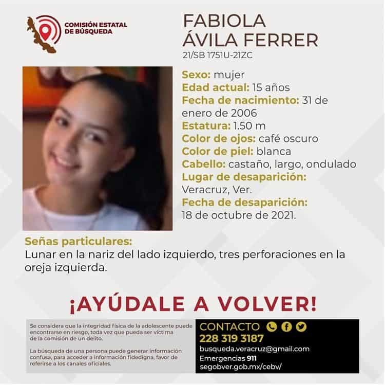 La joven Fabiola Ávila Ferrer, de 15 años, también se encuentra sin localizar desde el día 18 de octubre, y su familia pide la colaboración de la sociedad para dar con su paradero.